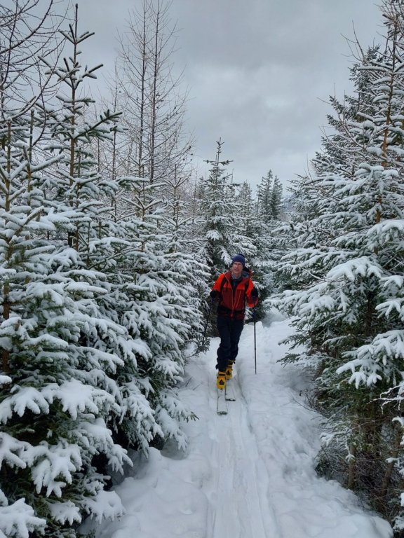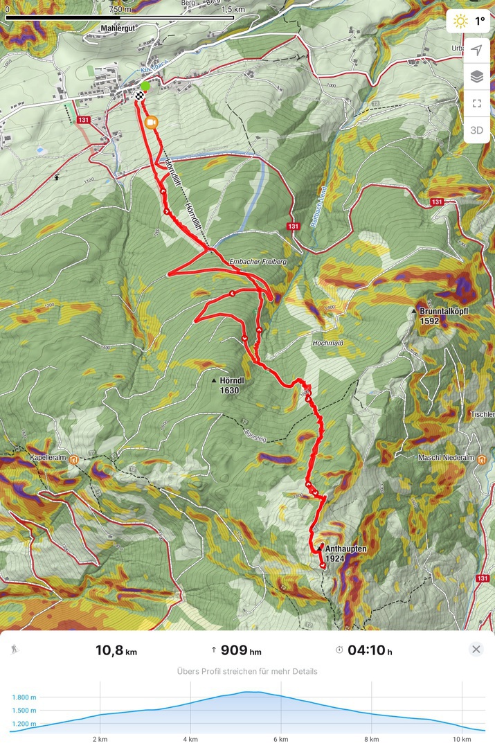 Anthaupten (1924 m), 909 hm, L+: Rein nordseitige Skitour, die auf den ersten 300 hm über das kleine Skigebiet führt (diesen Aufsteige könnte man sich auch mittels Einzelfahrt mit dem Schlepper für 6€ erkaufen, haben wir aber nicht gemacht). Danach im Direttissimastil durch den dichten Wald hoch, bis man auch etwa 1750 m wieder auf freies Gelände trifft, wo wir satt Pulver vorfanden. Unschwierig auf den Gipfel, der eine nette Aussichtwarte ist. Abfahrt wie Aufstieg bis man auf eine Forststraße trifft, die sich bei mäßiger Schneelage besser zur Abfahrt eignet wie der hutzelige Wald und unten raus dann einfach über die präparierte Piste.