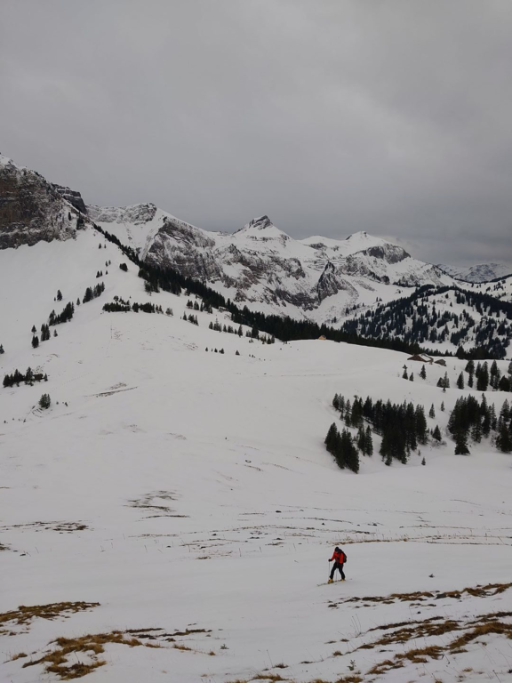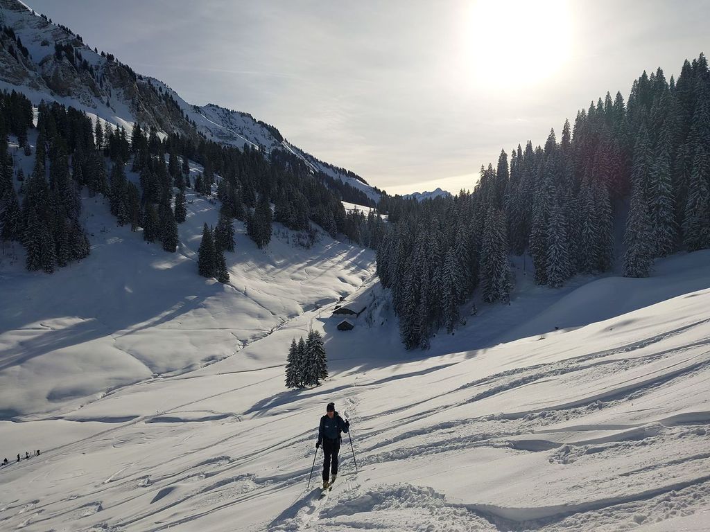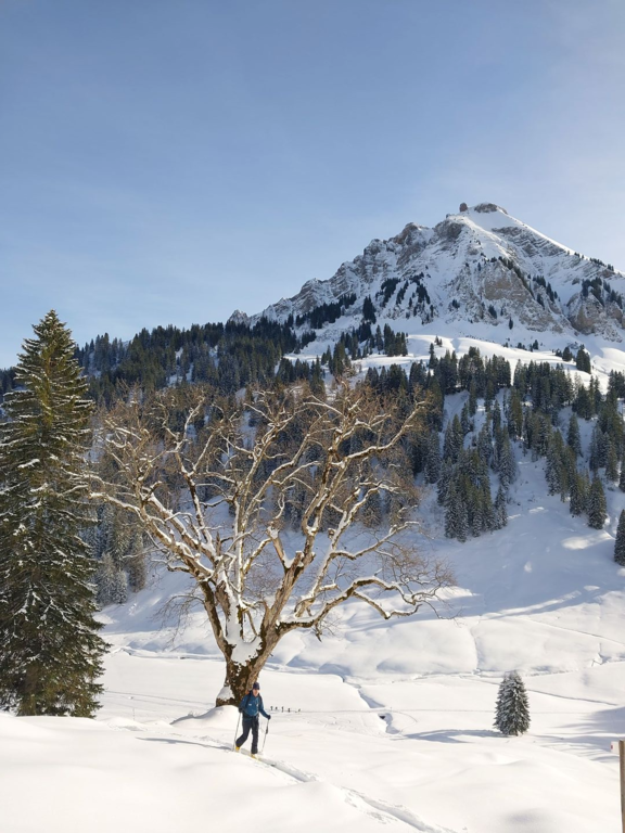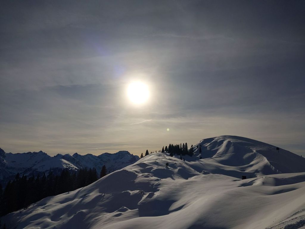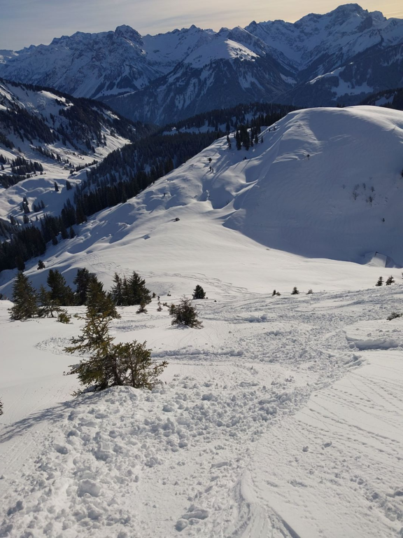 Jahresauftakt auf Ski war wie im Jahr zuvor über Dreikönig mit Tobi im Schetteregg im Bregenzerwald. Es hatte reichlich Schnee selbst südseitig bis ins Tal, weshalb wir bei bestem Wetter die Chance nutzten, den Hirschberg mal endlich von seiner Südseite her zu machen. Westseitig über die alte Pistentrasse hatte ich diese schon öfters gemacht, da ist es eine kurze und nette Skitour, endet aber eigentlich auch ziemlich weit vom Gipfel entfernt an der Bergstation des alten Skilifts. Von Süden her sind es mehr als 1100 Höhenmeter und man landet am Gifpelkreuz. Unten über tolles, offenes Almgelände und dann mit einer Gegensteigung in super Gipfelhang. Absolute Empfehlung, wenn es denn südseitig mal gescheiten Schnee hat. Tags darauf war das Wetter echt mies mit Regen bis über 2000m. Ich sagte früher schon öfters, dass ich bei allen Bedingungen Skitouren gehe, außer wenn es regnet, weil bei Regen fährt man einfach kein Ski. Aber was interessiert mich mein Geschwätz von gestern, wenn die Alterative wäre, dass wir den ganzen Tag im Hotelzimmer rumgammeln. Also dann halt Ski+ und eine Tourenkarte fürs Skigebiet Damüls-Mellau geholt, weil ich schon lange Mal auf die Kanisfluh mit Ski wollte. Immerhin war die Lawinengefahr gering, was dort wichtig ist. Die Hoffnung, dass das Wetter etwas weiter oben besser ist, erfüllte sich leider nicht. Also ging es von der Bergstation aus im Regen in Richtung Kanisfluh. Die Schneequalität litt natürlich massiv unter dem Regen. Nichtsdestotrotz, schafften wir es den großen Gipfelhang der Kanisfluh in vielen Spitzkehren hochzuspuren. Am Gipfelkamm für den finalen Fußaufstieg angekommen waren wir dann aber brutal dem Wind ausgesetzt. >80 km/h Wind, das machte dann auch wirklich keinen Spaß mehr und paar Höhenmeter runter dem Gipfel kehrten wir in den Windgeschützen Gipfelhang um und fuhren ab bis zum Lift. Skitour im Regen kann man mal machen, geil ist aber anders… Anderntags war dann wieder gutes Wetter und so machten wir noch die Winterstaude von Schetteregg aus. Durch den Regen am Tag zuvor und das Überfrieren in der Nacht war das aber alles, nur kein Pulver mehr… Aber wie sagt der Sachse: „S´ging ooch“