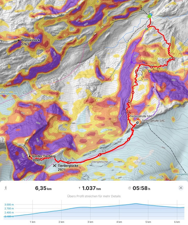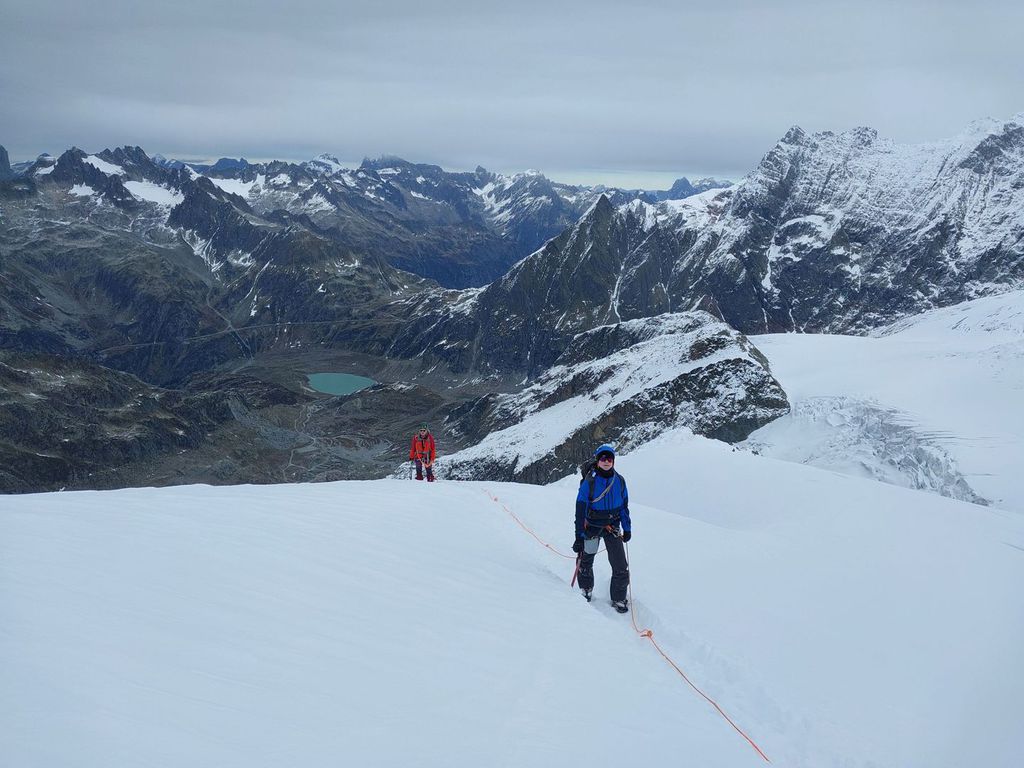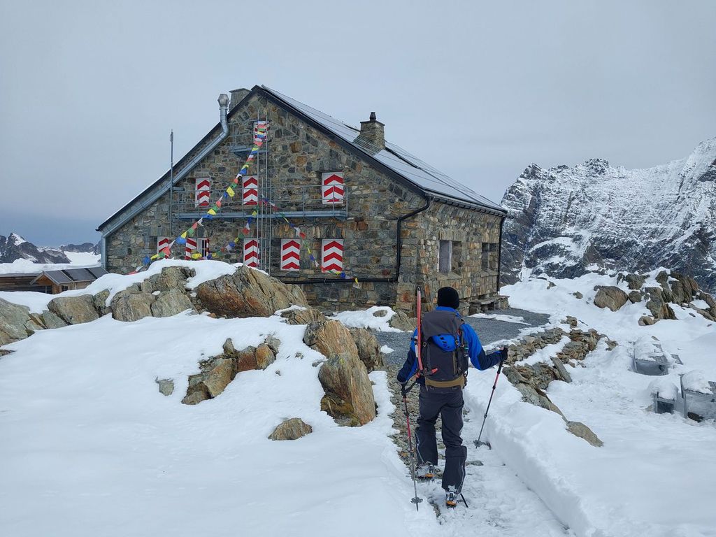 Zum Abschluss der alpinen Sommersaison, bevor die Ski ausgepackt werden, Stand zum langen Wochenende am dritten Oktober dann ein Hochtourenwochenende mit meinem Patenkind Nils an, der auch mal was mi Gletscher machen wollte. Ziel war die hoch gelegene Tierberglihütte in der Urner Alpen, da diese noch bis zu dem Wochenende offen hatte um von dort aus was zu machen. Naja ein paar tage bevor wir anreisen wollten kam ein Wintereinbruch mit fast einem Meter Neuschnee. Ich las auf de Instagramseite der Hütte, dass das Personal schon abgestiegen war aber wohl noch zum 03.10 wieder hoch wollte. Deshalb schrieb ich die fünf Tage vorher an, ob das mit meiner Reservierung noch steht und ob wir kommen könne. Auskunft des Hüttenwirts: Klar, kommt, wir haben auch noch andere Reservierung und sind an dem Wochenende nochmal oben. Am 02.10 ruft mich morgens dann der Hüttenwirt an, ob wir auch wirklich kommen, weil es hat immer noch viel Schnee hat, auch im steilen Hüttenzustieg. Und man da auf jeden Fall Steigeisen bracht. Ich meinte nur: Kein Ding, wir wollen eh Hochtouren machen und haben alles dabei. Der Hüttenwirt nur: Ok, kommt dann aber bitte auch wirklich, da ich dann nur wegen euch drei zur Hütte hoch gehe, weil alle anderen Gäste ihre Reservierungen storniert hatten… Wir fuhren dann am 03.10 morgens zum Sustenpass und schon kurz nach dem Parkplatz finge im Hüttenzustieg Schnee und vor allem Eis an. Ohne Steigeisen hätten wir echt schlechte Karten gehabt und so konnte Nils schon im Hüttenstieg das Steigeisengehen üben und ich muss sagen, er ist da echt ein Naturtalent, er hatte die zum ersten Mal an. An der Hütte angekommen war diese noch zu, aber der Wirt wollte eh erst am Nachmittag kommen. Der ursprünglich Plan war auf Sustenhorn zu gehen, aber der Steingletscher war fett eingeschneit und es hatte dorthin auch keine Spur. Es wären schon top Bedingungen für eine Skitour gewesen, aber nicht für einen Fußaufstieg. Aber zum Vorderen Tierberg hin war eine Spur und die Tour viel kürzer. Also wühlten wir uns, oft knietief, dann in klassischer Gletscherseilschaft, ich voran, dort hoch. Auch Nils merkte, dass ob Höhe das schon zach anstrengend sein kann, aber er hatte seinen Spaß und kam so auf seinen ersten 3000er. Kaum auf dem Gipfel angekommen zog es zu, kaum Sicht und wir eierten unsere Spur zurück zur Hütte wo in der Zwischenzeit der Hüttenwirt eingetroffen war. Und der war super entspannt, gut gelaunt und erzählfreudig. Der war dann extra für uns da, machte uns Abendessen und Frühstück. Wir saßen auch eine ganze Weile zusammen vor dem Ofen in der Stube und haben erzählt. Klasse Sache, das hat sich angefühlt wie einem Winterraum zu sein, aber einen Privatkoch zu haben… Anderntags dann der Abstieg und gemütliche Heimfahrt.