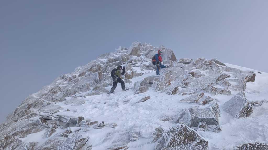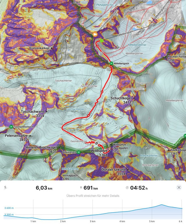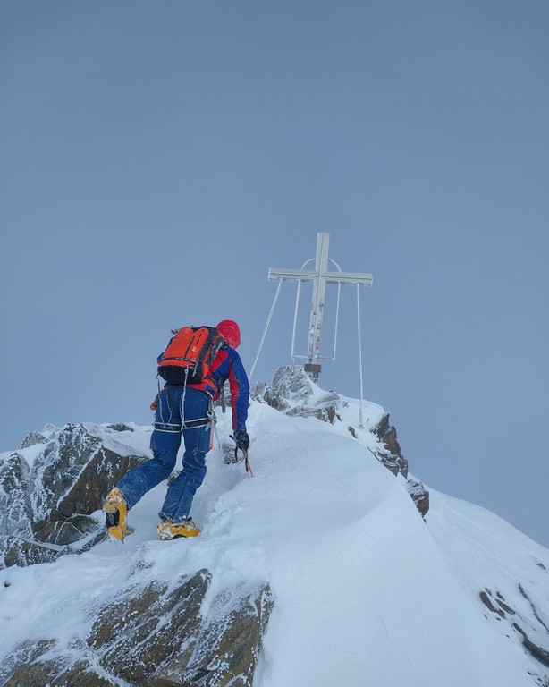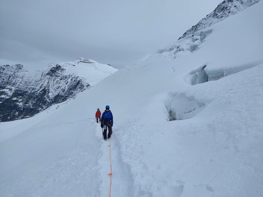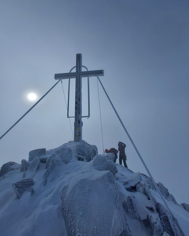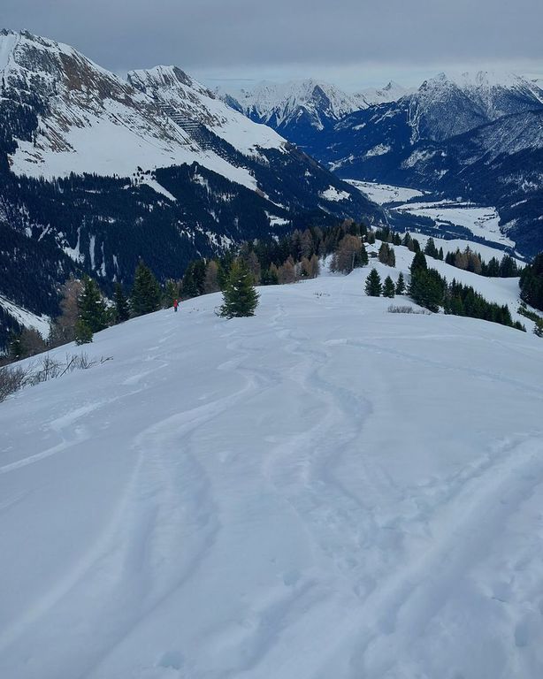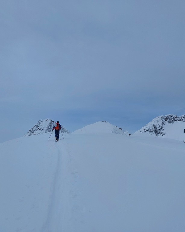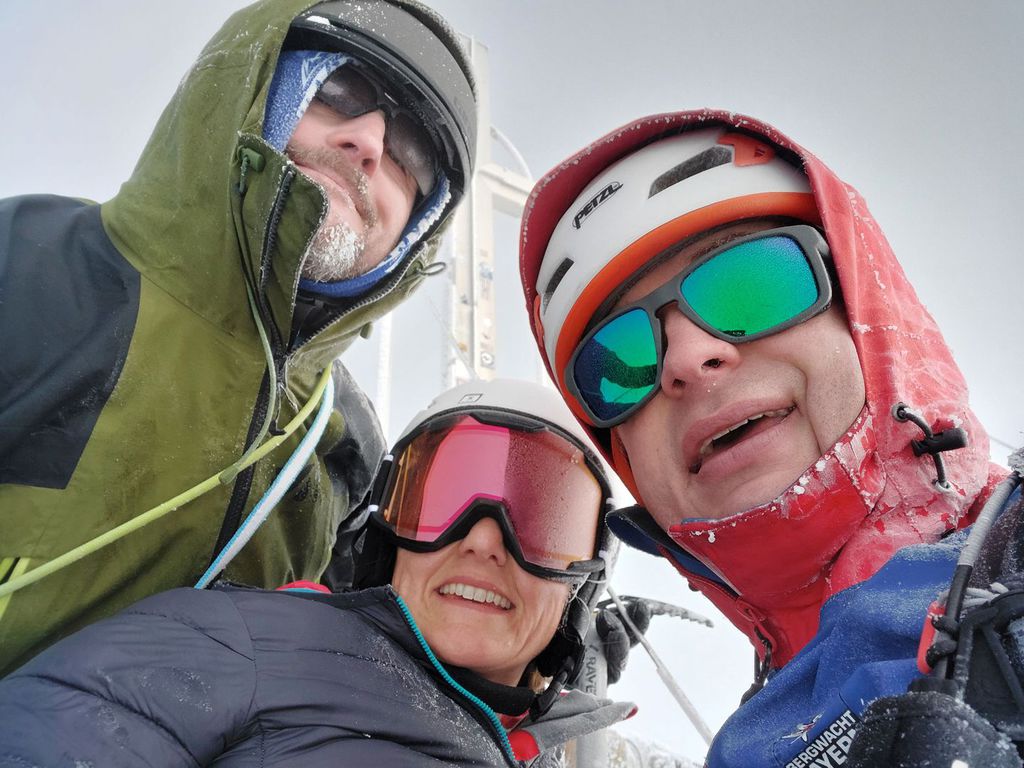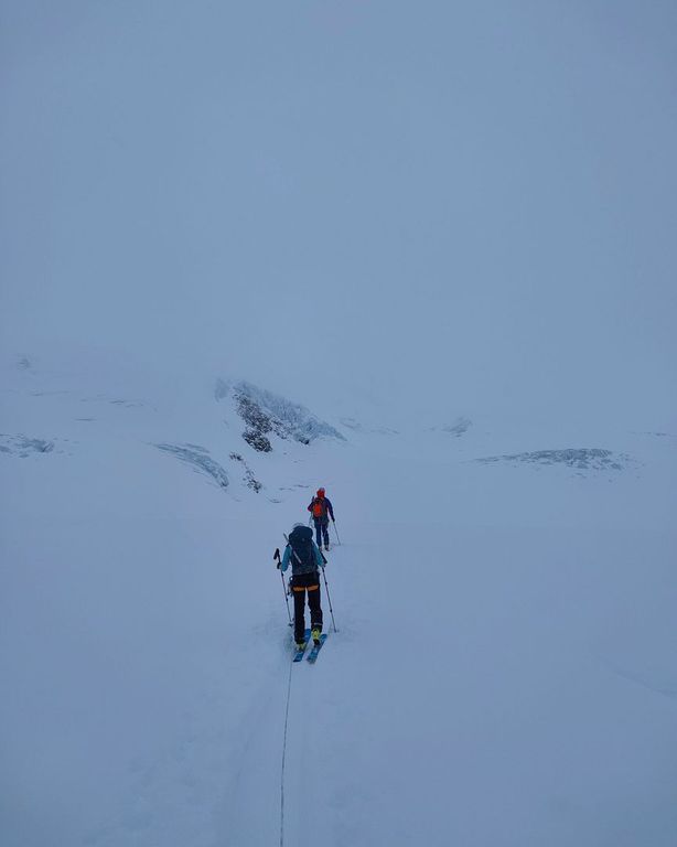 Mitte November bekamen die Nordalpen dann einen ordentlich Packen Schnee ab, also wie im letzten Jahr Saisonauftakt per Skihochtour! Wie 2024 (siehe: Morchel Pictures - Alpines 2024) war der Ausgangspunkt das Pitztaler Gletscherskigebiet, wieder mit Christian und diese Mal war auch Nadja mit, wir drei hatten schon einige andere Touren zusammen gemacht, also ein eingespieltes Team. Der Plan war eigentlich mal nicht auf die Wildspitze zu gehen, da Christian und ich auf das Jahr zuvor mit Ski und Susanne du ich im August 25 noch zu Fuß oben waren (Morchel Pictures - Top of Ötzal – Wildspitze). Klar, super Gipfel, aber wir dachten wir machen dann mal den Hinteren Brochkogel sowie die Petersenspitze daneben, weil wir auf den beiden Haufen halt noch nie waren. Der Taschachferner war zwar schon super eingeschneit, aber die Sicht war an dem Tag echt mies und es war zapfig kalt. Am oberen Teil des Taschferners stapften wir im Nebel rum und die wenig ausgeprägte Firnkuppe der Pertersenspitze hätten wir nur per GPS gefunden, wenn überhaupt. Also weiter Richtung Brochkogel. Tja, der hing auch im Nebel und zur Wildspitze hin hatte es noch eine Spur. Man konnte zudem erahnen, dass der Gipfel der etwa 130 Meter höheren Wildspitze eventuell grad so aus dem Nebel schaut. Spontane Planänderung, dann halt doch wieder die Wildspitze… Mit den Ski bis zum Gipfelgrat und dann im eisigen Wind über sehr winterliches Gelände bis zum Kreuz, wo tatsächlich grad so die Sonne rauskam. Dadurch war ich also innerhalb von 53 Wochen dreimal auf der Wildspitze. Das reicht dann aber auch erst mal. Abstieg und Rückweg ohne besondere Vorkommnisse. Weil es auch in den Voralpen Schnee bis in die Täler hatte ging ich anderentags dann noch mit Christian vom Lechtal aus die Skitour „Auf die Mutte“, ein ordentlicher Auftakt der Skitourensaison und das wie im Jahr zuvor schon im November.